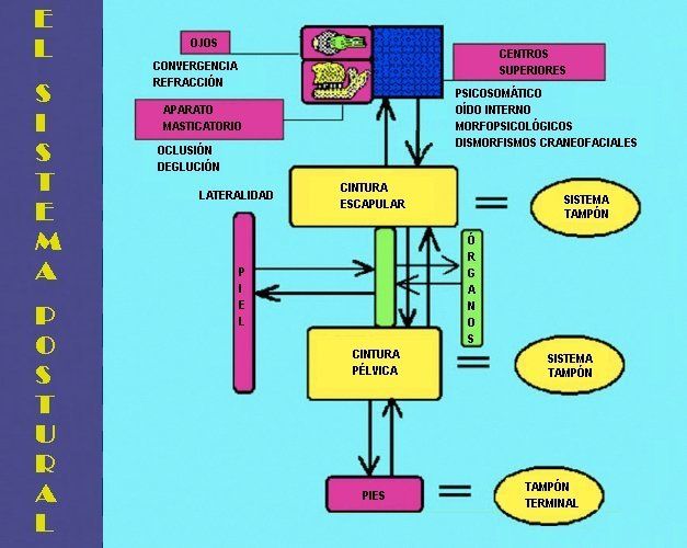 El hombre debe adaptarse a la fuerza universal de la Gravedad y para ello utiliza un sistema al que llamamos sistema postural. Este es un sistema cibernético que relaciona diferentes captores (entradas) y verifica si están en equilibrio entre sí, emitiendo una respuesta de adaptación al medio (salida). La Posturología es la disciplina encargada de estudiar el equilibrio estático – postural de nuestro cuerpo, y cómo los receptores informan a nuestro sistema nervioso central para que éste actúe a nivel muscular aumentando o reduciendo el tono. Las principales entradas del sistema son los ojos, el aparato masticatorio, los centros superiores, la piel, y los pies. Estos captores reciben unas informaciones a través de sus receptores que llegan al sistema nervioso central, que es el encargado de modular la respuesta a través de los efectores (músculos). En el receptor podálico lo que se altera es la distribución de las cargas posturales, por lo que podrá haber problemas adaptativos y problemas anatómicos. Cuando el problema es adaptativo normalmente se debe a una causa de origen superior (boca, ojo,…). Y si se trata de un problema anatómico, es el mismo pie el que está creando la alteración postural. Ante tal diferencia es muy importante el diagnóstico dado que dependiendo del tipo de problema cambiará el tratamiento. En relación al sistema masticatorio, lo que se estudia es la posición mandibular con respecto al cráneo y al cuerpo. La mandíbula está articulada al cráneo por las articulaciones temporo-mandibulares, que son bilaterales y sincronizadas. Estas articulaciones soportan la tracción pero no la compresión; pues cuando cambian de posición, el Sistema Nervioso Central lo evidencia y su forma de defenderse es el bruxismo (apretar los dientes de forma involuntaria). Esto se hace normalmente durante el sueño, creando así contracciones musculares cráneo-cervicales, bloqueos de las vertebras cervicales y de las suturas craneanas, pérdida de la convergencia y, como consecuencia, pérdida del equilibrio de las cadenas musculares. Respecto al receptor ocular, se estudia la refracción o visión, y la movilidad ocular o convergencia. Cuando se pierde la coordinación de la convergencia o se altera la refracción, la cabeza adopta posiciones viciadas que harán que las cadenas musculares superiores trabajen mal, provocando bloqueos cráneo- cervicales, que incluso pueden llegar a compensarse a nivel de los pies. Otra de las cosas que estudia la Posturología es la bioquímica del organismo, dado que sus alteraciones (toxinas, carencias de nutrientes, intolerancias alimenticias,…) pueden crear también contracturas musculares que alteraran la postura del cuerpo. La psique y su interacción con todo el organismo a través del sistema neurovegetativo, influye en un buen equilibrio general y por ende postural. Como es evidente, en la alteración de la postura intervienen diferentes factores, por lo que ha de ser tratada desde varias disciplinas, siendo también imprescindible que tengan la misma óptica al diagnosticar y el mismo lenguaje terapéutico. Por ello, en muchas ocasiones el tratamiento debe complementarse a nivel multidisciplinar. Cuando se produce una disfunción en el sistema pueden aparecer algias (tendinitis, raquialgias, cefaleas, pseudovértigos, trastornos motores oculares, dolores de articulaciones, etc.) pero también pueden afectar en los trastornos de atención, especialmente en niños, en la precisión gestual de los deportistas, trastornos circulatorios y ciertos trastornos viscerales. Es posible regular el sistema postural mediante uno de sus principales captores, el pie, gracias a las plantillas de postura. Éstas son palmillas planas con pequeños relieves de pocos milímetros de grosor o incluso menos de 1mm, colocados bajo su cara plantar. Estos pequeños relieves actúan modificando la percepción del entorno y desencadenando reflejos posturales de reequilibración, gracias a los baroreceptores podales que reaccionan a presiones de menos de un gramo. De esta manera las plantillas de postura permiten "engañar" al sistema postural del paciente, haciéndole creer en un desequilibrio aumentado que se corregirá de inmediato por vía refleja (reflejo antigravitatorio y reflejo miotático).